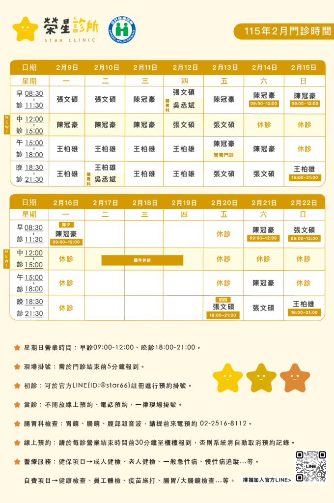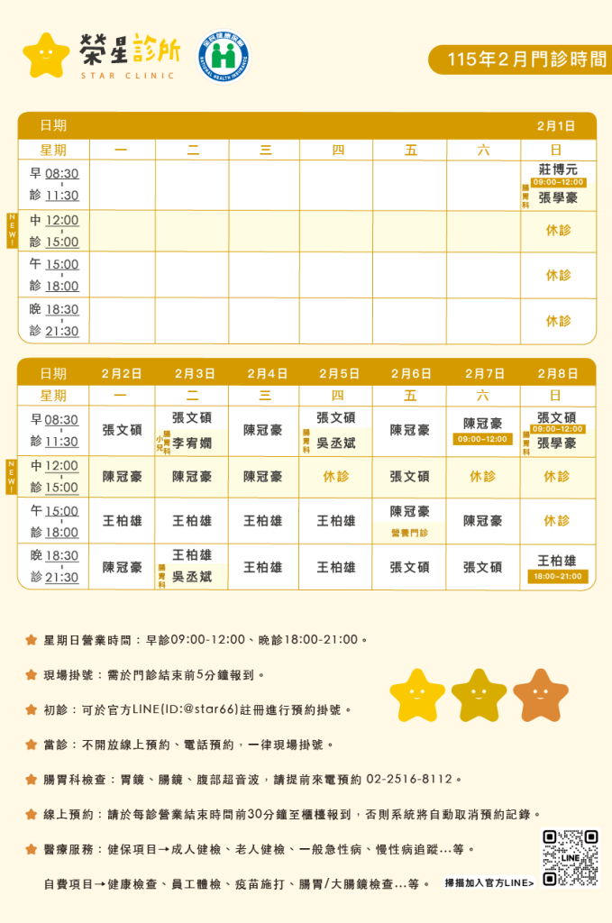 ⭐二月門診表