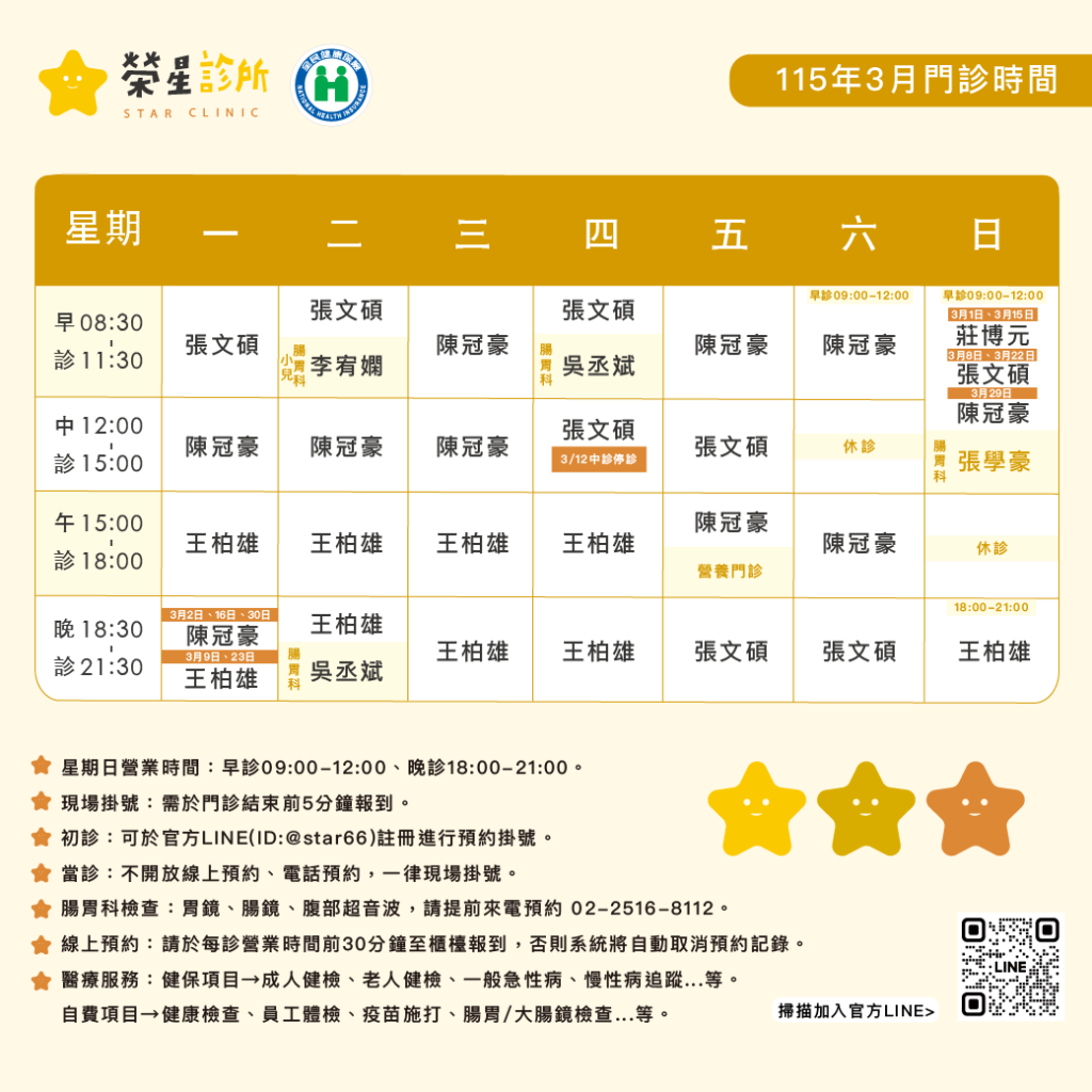 ⭐三月門診時間